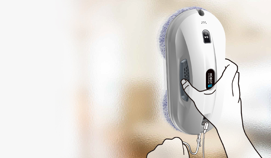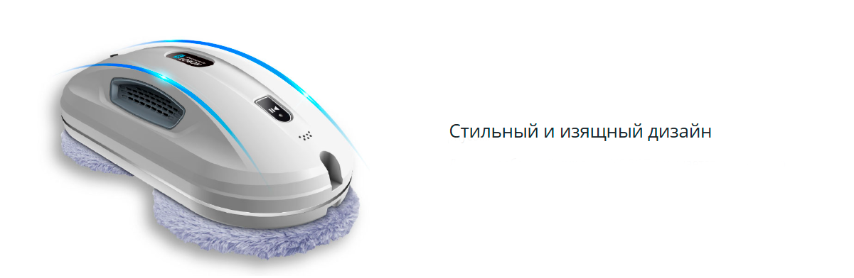 HOBOT-368 выполнен в компактном корпусе белого цвета с черными элементами. Устройство выглядит современно и аккуратно, а небольшие габариты и вес всего 0.94 кг делают его удобным для работы с окнами, зеркалами и другими стеклянными поверхностями.